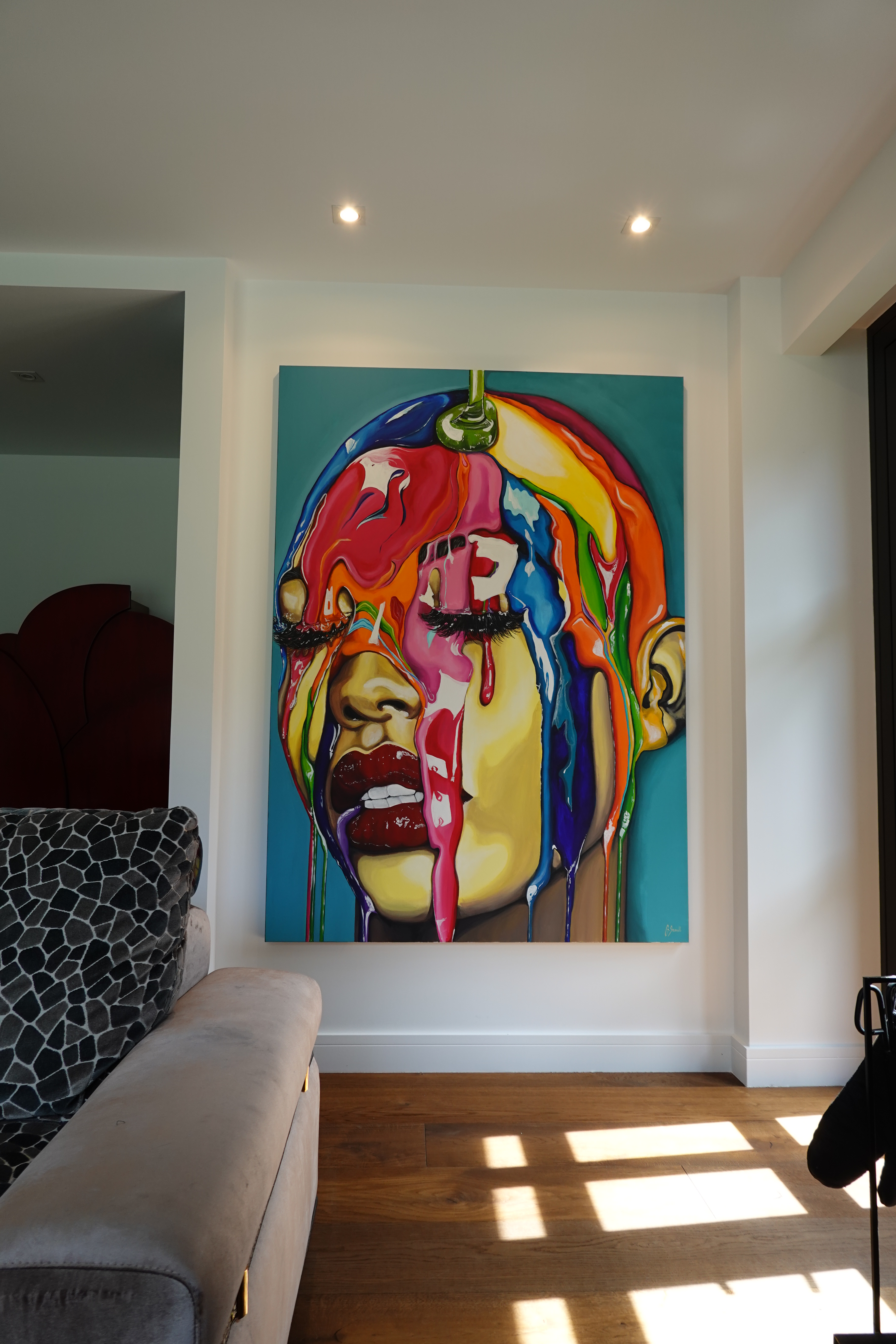 Artista visual contemporánea que fusiona la pintura figurativa con una explosión visceral de color. Con una técnica única y una narrativa emocional, sus obras trascienden la decoración para convertirse en símbolos de identidad, poder y legado, habitando espacios de lujo con elegancia y alma.